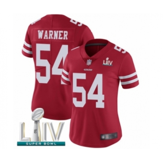 >Women's San Francisco 49ers #54 Fred Warner Red Team Color Vapor Untouchable Limited Player Super Bowl LIV Bound Football Jersey