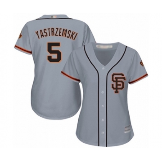 >Women's San Francisco Giants #5 Mike Yastrzemski Authentic Grey Road 2 Cool Base Baseball Player Jersey