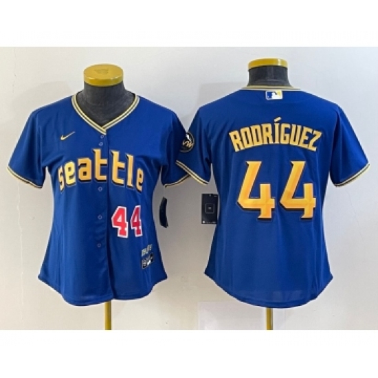 Women's Seattle Mariners #44 Julio Rodriguez Number Blue 2023 City Connect Cool Base Stitched Jersey