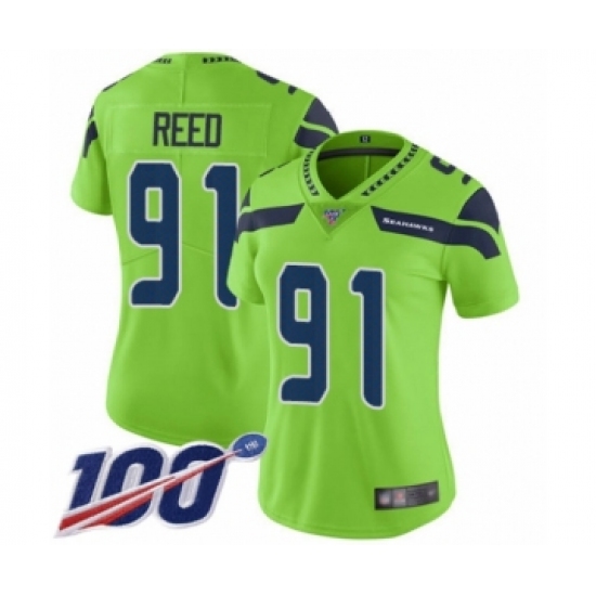 Women's Seattle Seahawks #91 Jarran Reed Limited Green Rush Vapor Untouchable 100th Season Football Jersey