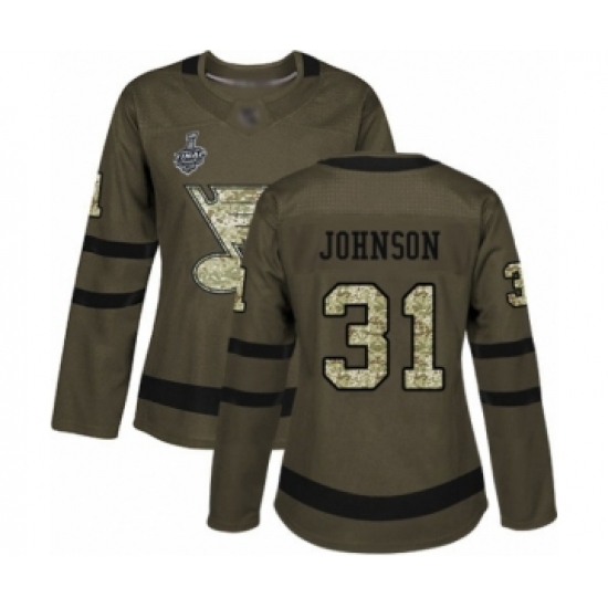 Women's St. Louis Blues #31 Chad Johnson Authentic Green Salute to Service 2019 Stanley Cup Final Bound Hockey Jersey