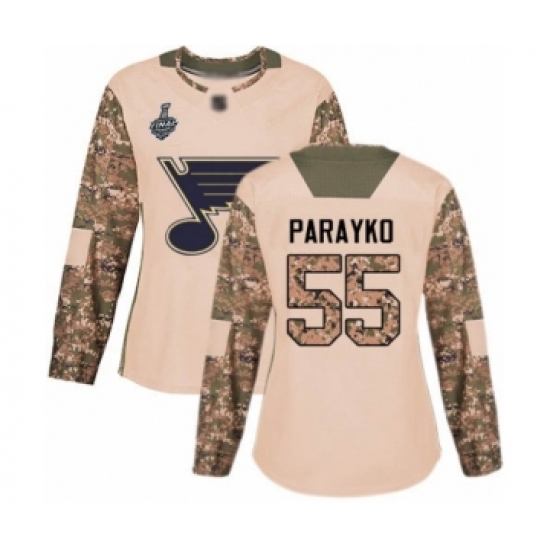 Women's St. Louis Blues #55 Colton Parayko Authentic Camo Veterans Day Practice 2019 Stanley Cup Final Bound Hockey Jersey