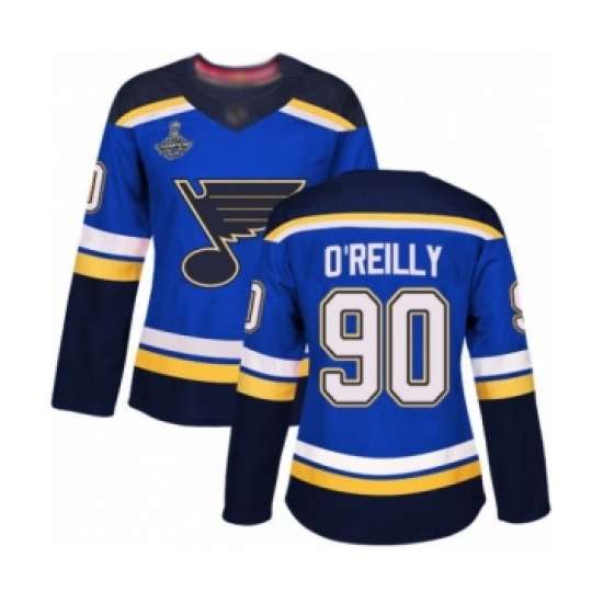 Women's St. Louis Blues #90 Ryan O'Reilly Authentic Royal Blue Home 2019 Stanley Cup Champions Hockey Jersey
