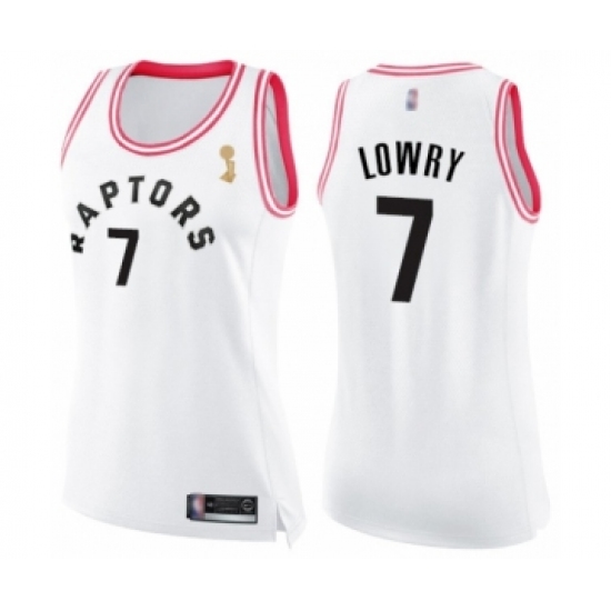 Women's Toronto Raptors #7 Kyle Lowry Swingman White Pink Fashion 2019 Basketball Finals Champions Jersey