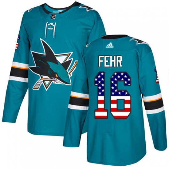 Men's Adidas San Jose Sharks #16 Eric Fehr Authentic Teal Green USA Flag Fashion NHL Jersey