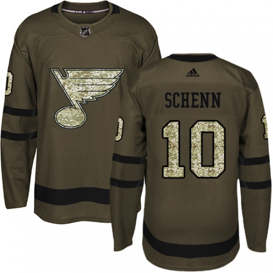Home>NHL>St. Louis Blues>Brayden Schenn>Youth Adidas St. Louis Blues #10 Brayden Schenn Authentic Green Salute to Service NHL Jersey