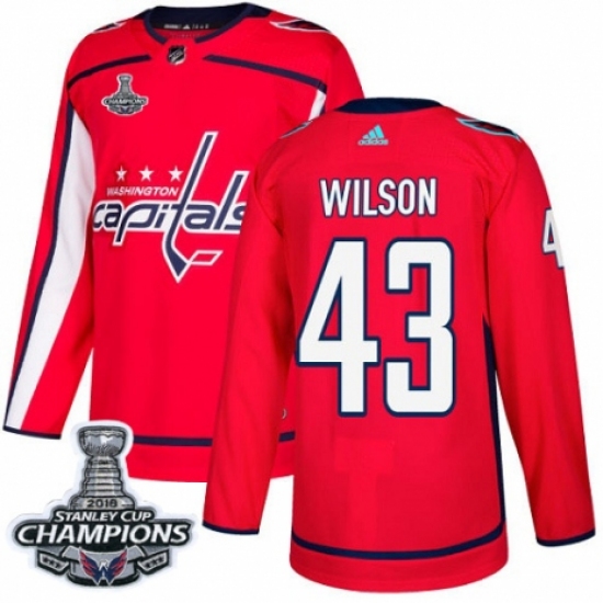 >Youth Adidas Washington Capitals #43 Tom Wilson Authentic Red Home 2018 Stanley Cup Final Champions NHL Jersey