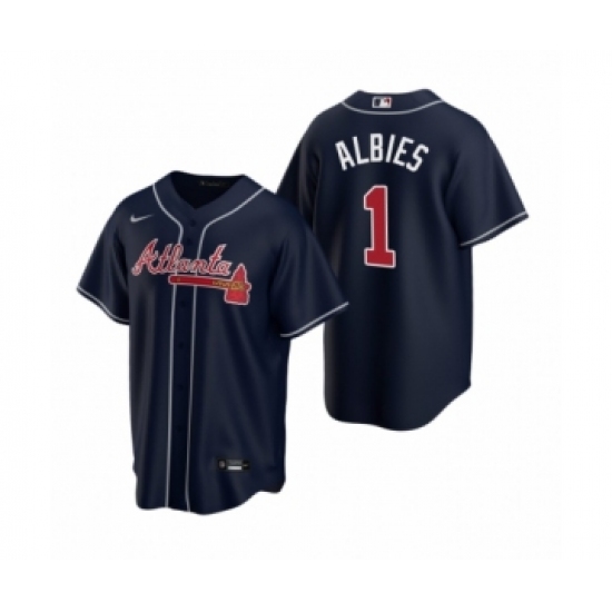 Youth Atlanta Braves #1 Ozzie Albies Nike Navy 2020 Replica Alternate Jersey