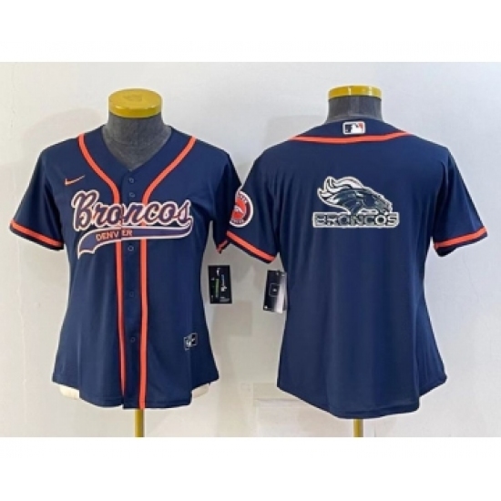 Youth Denver Broncos Navy Team Big Logo With Patch Cool Base Stitched Baseball Jersey