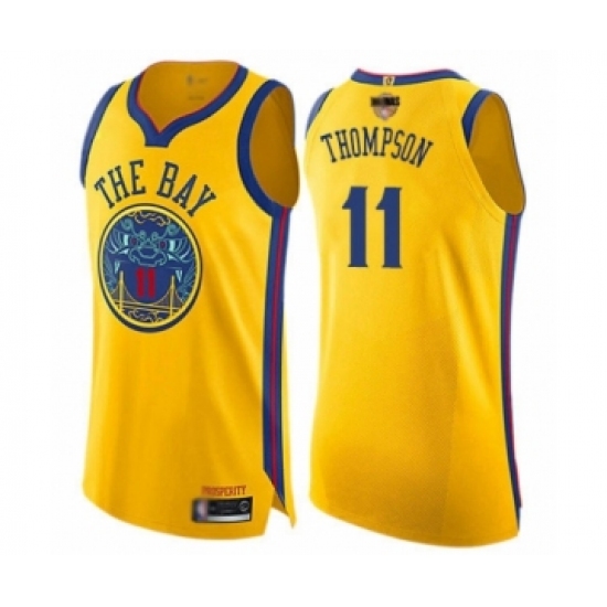 >Youth Golden State Warriors #11 Klay Thompson Swingman Gold 2019 Basketball Finals Bound Basketball Jersey - City Edition