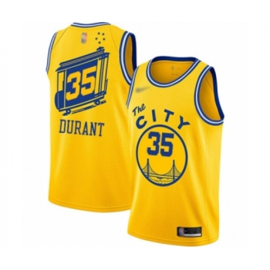 >Youth Golden State Warriors #35 Kevin Durant Swingman Gold Hardwood Classics Basketball Jersey - The City Classic Edition