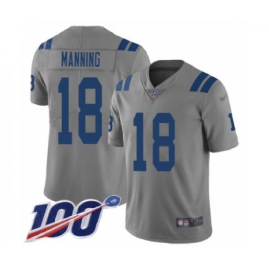 >Youth Indianapolis Colts #18 Peyton Manning Limited Gray Inverted Legend 100th Season Football Jersey