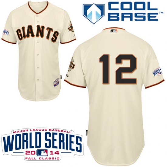 Youth Majestic San Francisco Giants #12 Joe Panik Replica Cream Home Cool Base w/2014 World Series Patch MLB Jersey