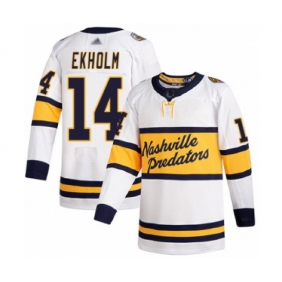 >Youth Nashville Predators #14 Mattias Ekholm Authentic White 2020 Winter Classic Hockey Jersey