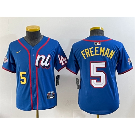 >Youth National League #5 Freddie Freeman Blue 2025 All-Star Edition Limited Stitched Baseball Jersey