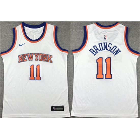 >Youth New Yok Knicks #11 Jalen Brunson White Association Edition Stitched Swingman Jersey