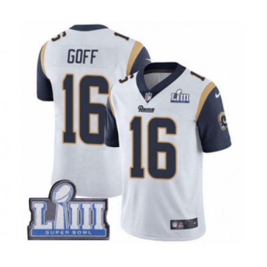Youth Nike Los Angeles Rams #16 Jared Goff White Vapor Untouchable Limited Player Super Bowl LIII Bound NFL Jersey