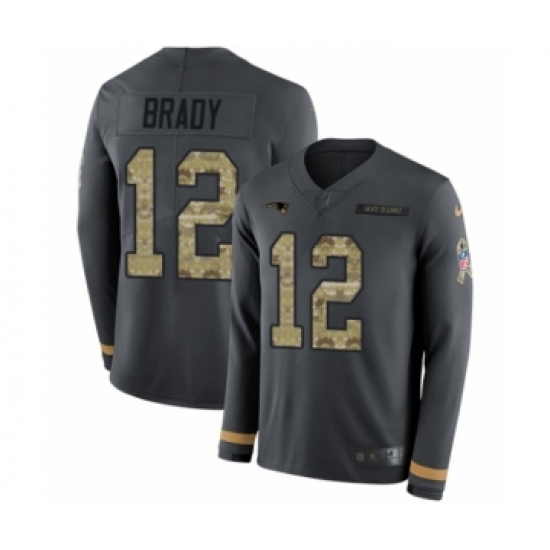 Youth Nike New England Patriots #12 Tom Brady Limited Black Salute to Service Therma Long Sleeve NFL Jersey