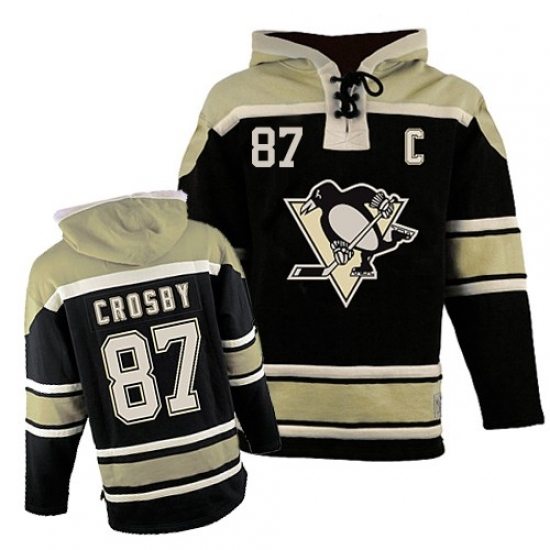 Youth Old Time Hockey Pittsburgh Penguins #87 Sidney Crosby Authentic Black Sawyer Hooded Sweatshirt NHL Jersey