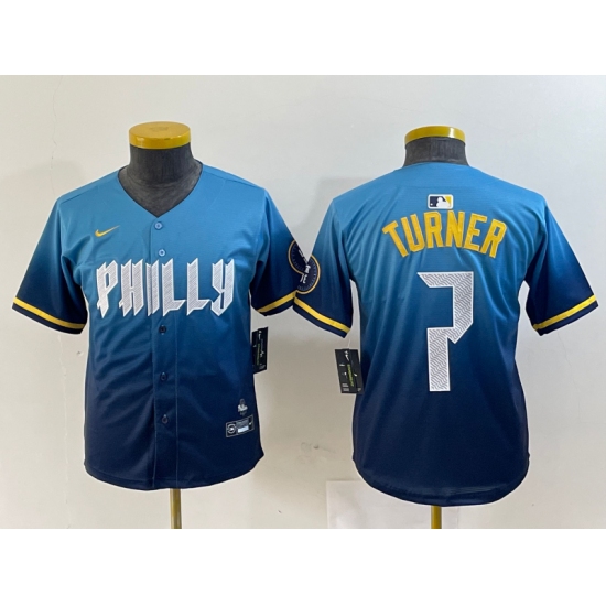 Youth Philadelphia Phillies #7 Trea Turner Blue 2024 City Connect Limited Stitched Jersey