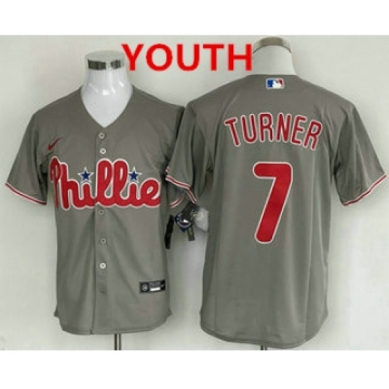 Youth Philadelphia Phillies #7 Trea Turner Grey Cool Base Stitched Baseball Jersey