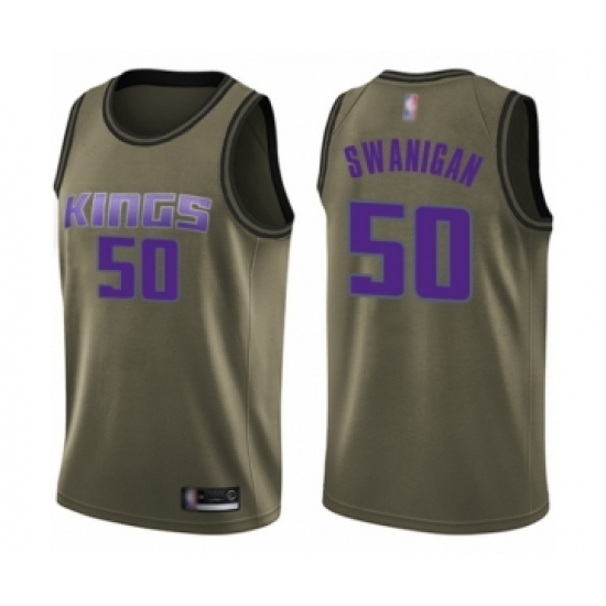 >Youth Sacramento Kings #50 Caleb Swanigan Swingman Green Salute to Service Basketball Jersey