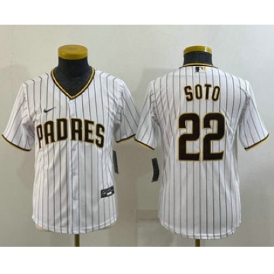 >Youth San Diego Padres #22 Juan Soto White Stitched MLB Cool Base Nike Jersey