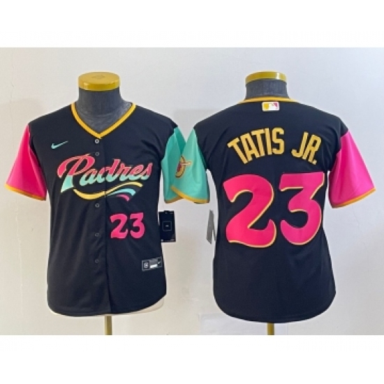 >Youth San Diego Padres #23 Fernando Tatis Jr Black Number 2022 City Connect Cool Base Stitched Jersey