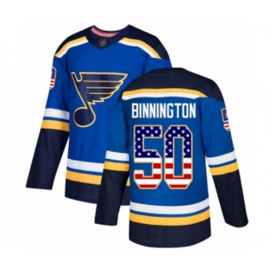 >Youth St. Louis Blues #50 Jordan Binnington Authentic Blue USA Flag Fashion Hockey Jersey
