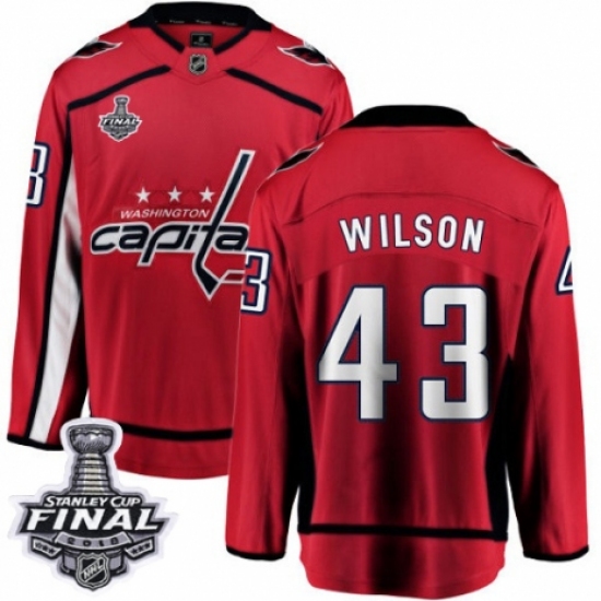 >Youth Washington Capitals #43 Tom Wilson Fanatics Branded Red Home Breakaway 2018 Stanley Cup Final NHL Jersey